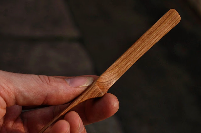 Another tea scoop from the 120+ years old ash wood from our garden and wild cherry tea pick. I think they would make a nice couple :) I was playing with the bottom of the scoop a little bit and created wavy surface. I already did this before, really like how this feels and looks.